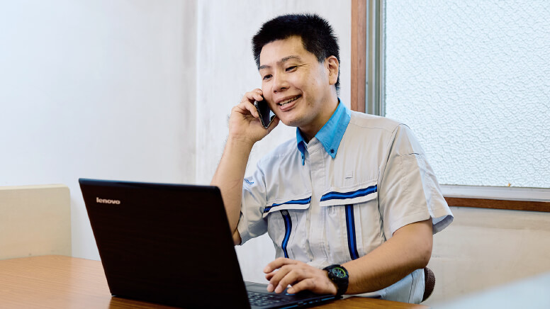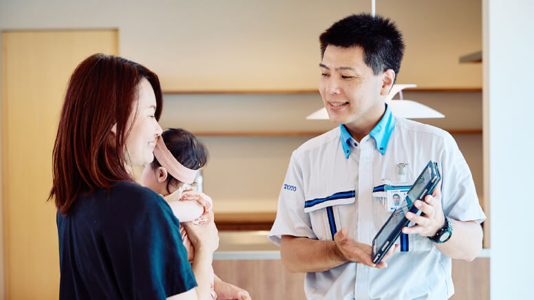 修理メンテナンス完了後は、今回の改善箇所について説明いたします。またあわせて製品の使い方や機能面の疑問にもお答えするなど、丁寧な対応を心がけています。